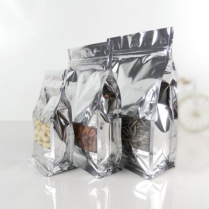 ပြတင်းပေါက်ပါရှိသော အလူမီနီယမ်ပြားပြား အောက်ခြေ ဇစ်အိတ်၊ ခိုင်ခံ့သော polypropylene ဖလင်ဖြင့် ပြုလုပ်ထားသော၊ ဖောက်ထွင်းမြင်ရသော ပြတင်းပေါက်သည် အထုပ်ကိုဖွင့်စရာမလိုဘဲ ကျွန်ုပ်တို့အား အထုပ်အတွင်းရှိ ကုန်ပစ္စည်းများကို ပြသနိုင်စေပါသည်။